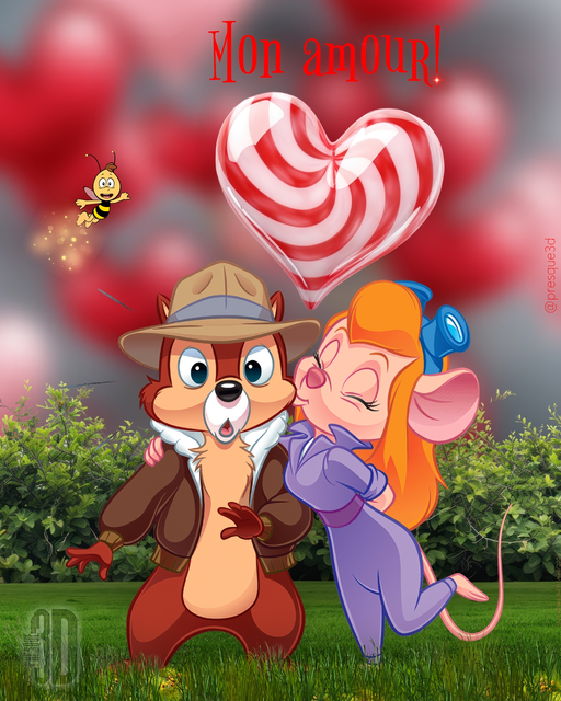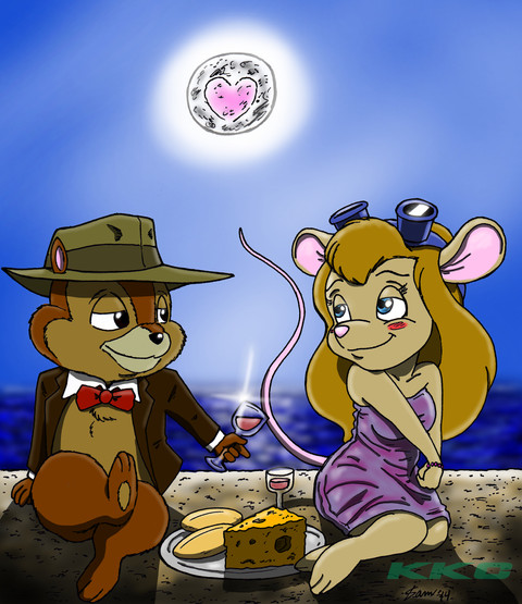 I always did like the ideal of Chip N Gadget getting together! Very cute picture of them kissing!