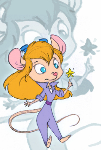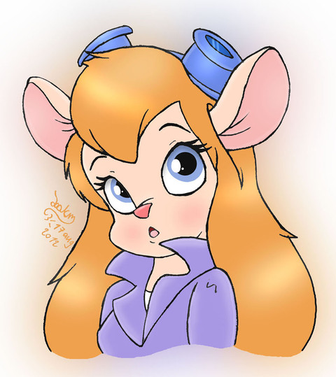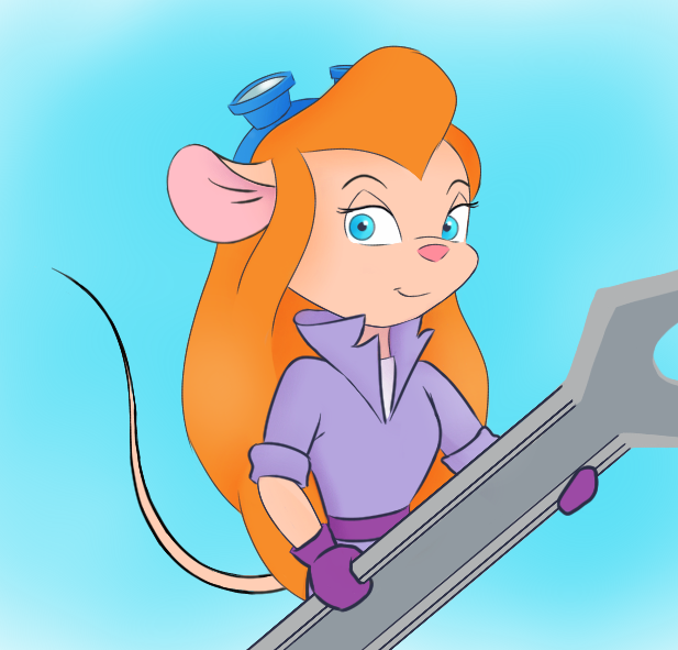 Gadget looks so pretty here. You drew and colored her beautifully, and I like the pleasant shine you gave her hair. The present looks wonderful - especially the lovely bow, and I just really love your use of blue here overall. I don't know exactly what well-wishes are written along the bottom, but this is a really lovely artwork. Very nicely done.