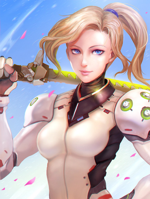 i was tired of only seeing fanart of mercy standing and being pretty with her staff, so i wanted to show how much of a badass she can be. ;v; i really hope you like it, and thanks for everyone dropping by the stream~!