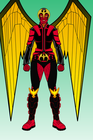 This is Mocking Jay, not really based on any Marvel Superheroine in particular, but partially inspired by Marvel's Firestar, Falcon and Spider Woman. She also, as is obvious, takes inspiration from The Hunger Games book series. Even though I'm personally not a Hunger Games fan, I know there are millions of others out there who are fans of the books, movies, etc. So if you are one of those who like The Hunger Games, this is dedicated to you!