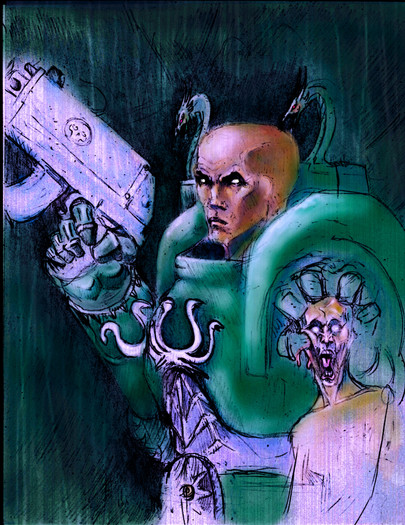Tzeentch whispers things to me some times. Right now he says the face of the mutant servant is based on someone the artist knows personally.