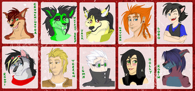 I dunno why I call this a collab since I did all of these myself.. I guess it just looks neat and pretty when I type it up.Anyway, here is a collection of Furcadian portraits run through various and assorted color codes. Some were commissions and some I drew for my own characters. Left to right row by row they are: