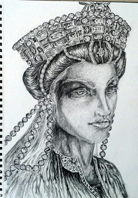 Jewish Queen who saved her people, I drew her with a concerned face because she is about to enter the throne room uninvited, which could mean death, yet she knows she must save her people. The book of Esther never mentions the name God in it at all!Related content