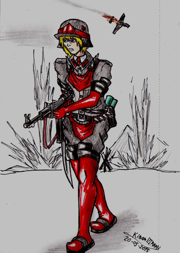 That girl is so clandestine, in her Allied uniform and crimson mask. It's no wonder she managed to make it all the way in to the belly of the beast, as it were. She's practically invisible.