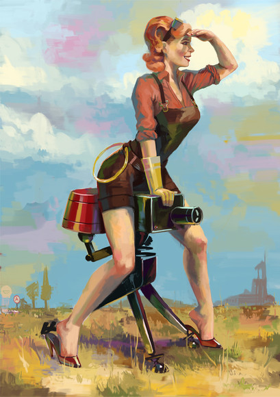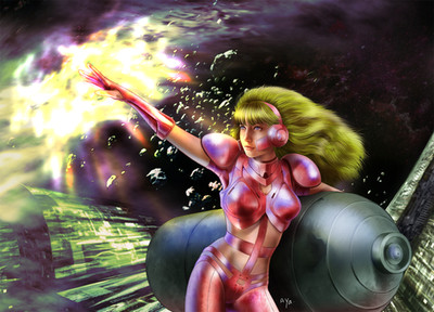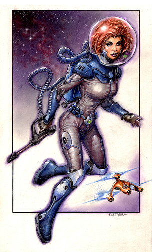 That is SO fun! I love her awesome flailing pose and that HUGE MOHAWK in that space jar helmet is just too awesome for words!