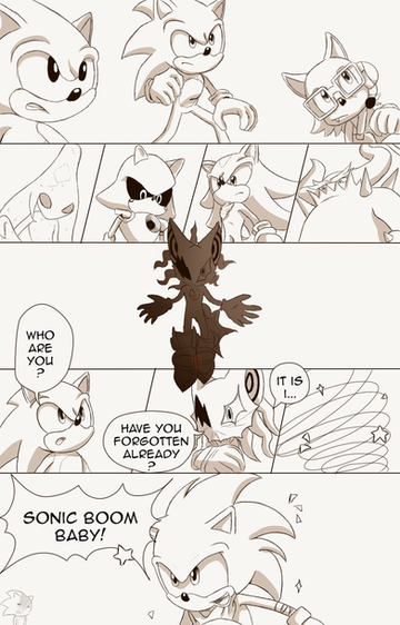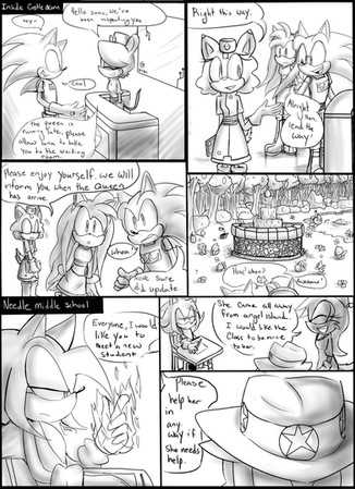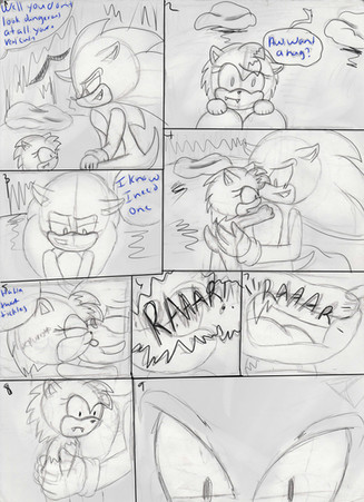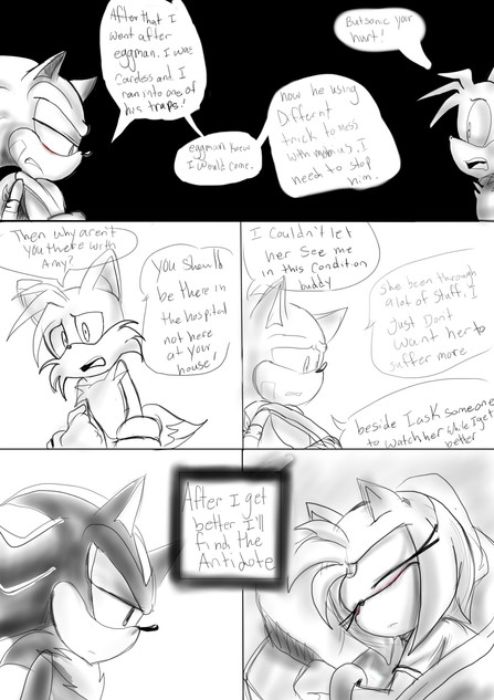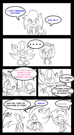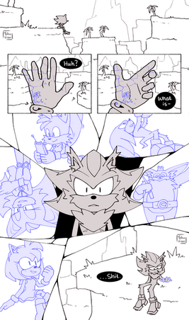 so random comic I did~ knuckles and Tikal are turn into kids with shadow. Some happen with sonic and the world is in chaos. btw Tikal holding a bottle that chaos is in. Really randombubbles are blank ...