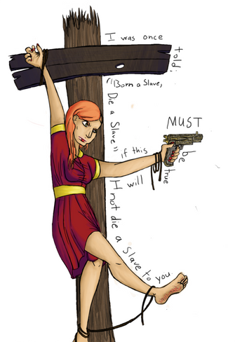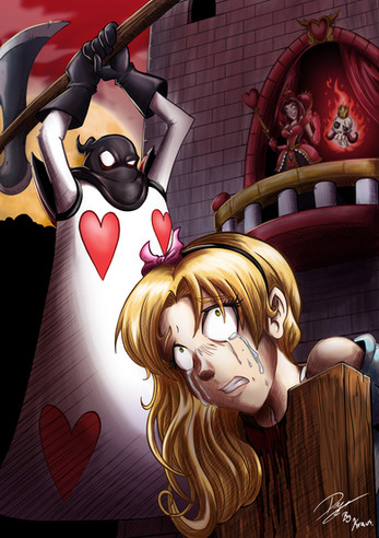 Slightly bloody guillotine, slightly bruised victim and the contours of "angry crowd". Enough fantasy, enough horror. Very few people can make execution scene look innocent and impressive at the same time, but you've managed to.