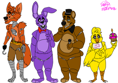 Chica has a more femine body, but is also strong in a way, she would be the height of bonnie if she could lift her hocks. She is taller than Fazzy.