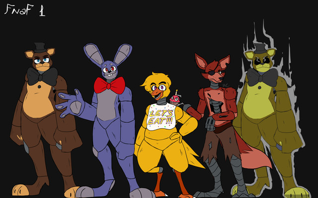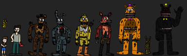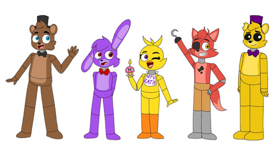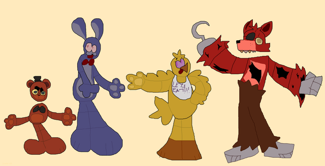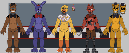This is the Heights for my first few, AU Five nights at Freddy's 1 characters, It goes Fazzy, Bonnie, Chica, Foxy and then Goldie. Let's first start off with the appearance since i've never had a chance to type about it.Fazzy is the smallest out of all of the Fnaf 1 animatronics, he has a straight body which makes him look not much masculine (nor fat). He is taller then no one.