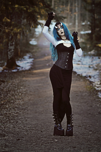 #alternative #black #boots #corset #fishnet #goth #leather #model #photography #purple #wig