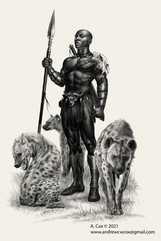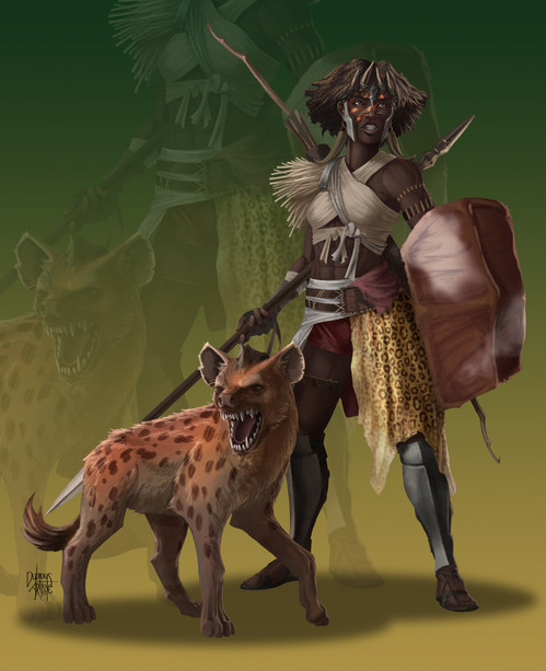 #africa #african #archer #character #characterdesign #conceptart #dog #fantasy #hunter #illustration #ranger #swordandsorcery #wilddog #paintedwilddog #dungeonsanddragons #warhound