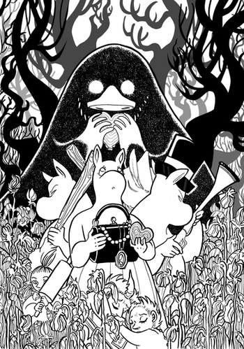 #moominmama #heartshapedsheashell #dark #fanart #groke #monster #moomin #roses #scary #snufkin #moominvalley #moominpapa #witheredroses #moominfanart #witheredbonnie