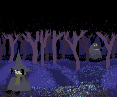 Part of my personal Moomin (1990) -cover image project, episode 7 cover image.Traditional line art, digital colours.