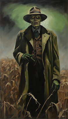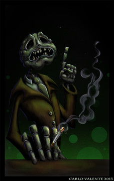 He looks as if he's imagining something very pleasing. I like the contrast between his expression and the mood of the picture.