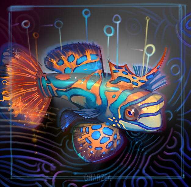Very fun! Lots of colors in there, and somehow you managed to keep it from looking overwhelming, or muddy, and kept the fish standing out Very nice job