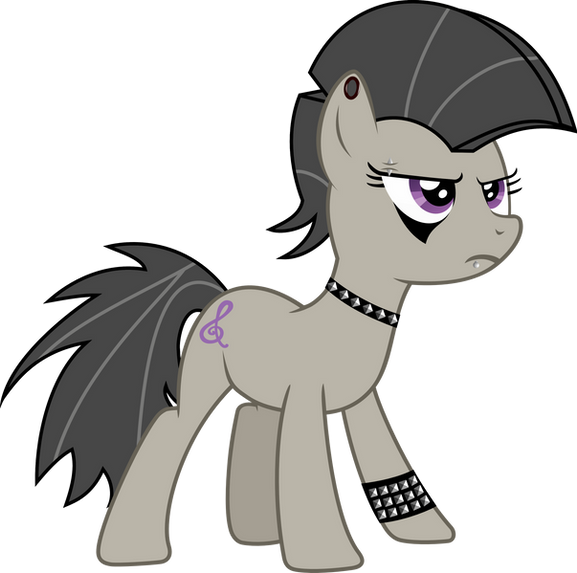 Honestly, I am not sure if I should call her punk or goth, or what. I dont think she's very goth. Anyways, she's just a background pony I made for a project im working on. She doesn't have a name yet, so feel free to suggest one! And any suggestions to improve her would be accepted ^^I wasn't sure what to put as her cutie mark so I went with a safety pin. Why? I have seen 'punk'ish people wear safety pins as piercings