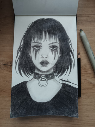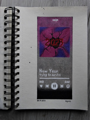 first and last drawing from 2023.portrayed person: www.instagram.com/maggothy/