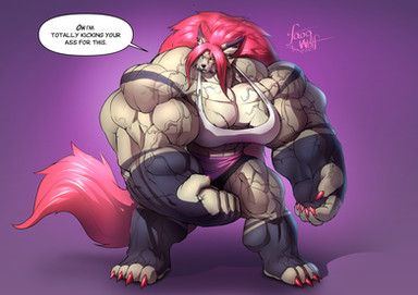 #anthro #big #breast #canine #female #fluffy #fur #furry #girl #huge #lady #limb #limbs #multi #muscle #muscular #strong #tail #wolf #thick #standing