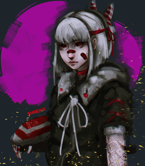 #samuraifemale #war #digitalart #digitalillustration #digitalpainting #femalecharacter #girl #horns #katana #raining #rainyday #samurai #warrior #samuraimask