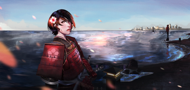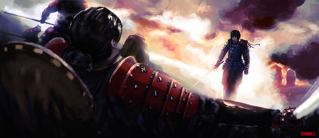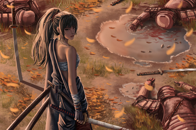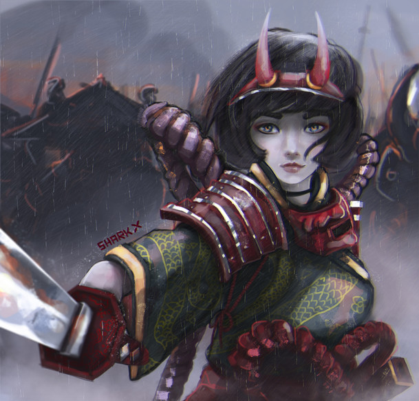 #digitalart #digitalillustration #digitalpainting #femalecharacter #girl #katana #raining #rainyday #samurai #samuraifemale #war #redsmoke #warrior