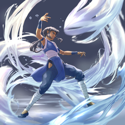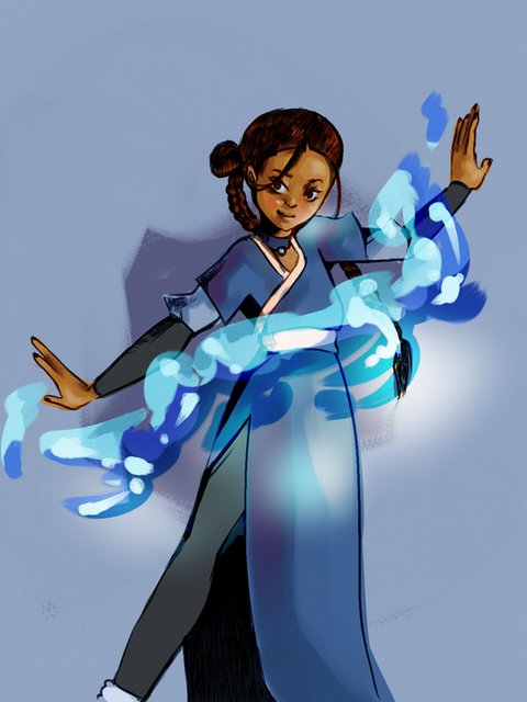 #anime #atla #blue #digitalart #katara #semirealism #waterbender #kritaartwork #avatarthelastairbender #fanartdigital