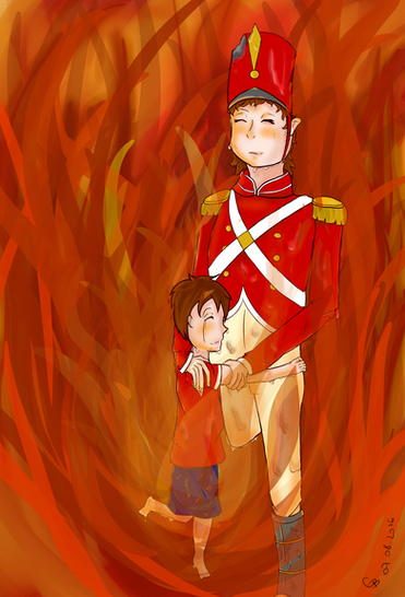 His bed was crammed with tin soldiers that he set marching and counter-marching, and advancing to the attack in the folds of his quilt