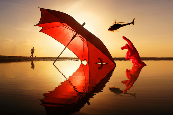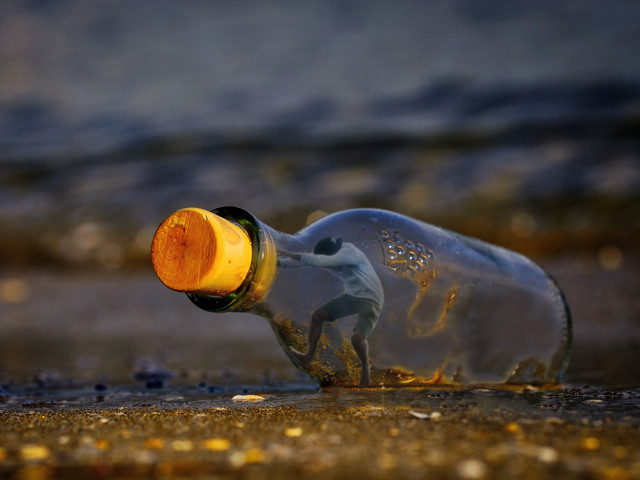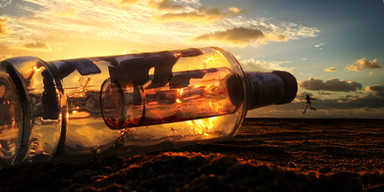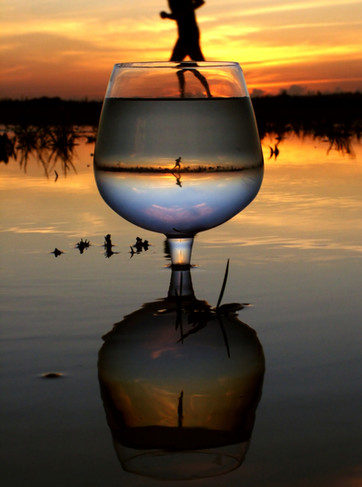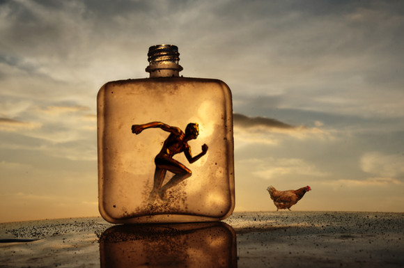 Nice captivating image with a great composition. I like how the warm sunlight shines through the bottle. The silhouetted runner makes the image even more interesting and the perfectly captured drop 'above' his head makes for a neat optical illusion. Great job
