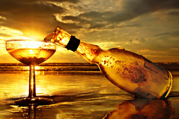 A toast to summer. Drink to the last sun drop from an empty bottle of rum.Related content