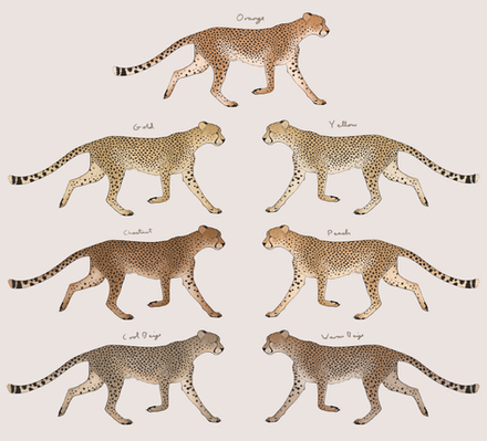 Cheetahs have always been my fav animal and this is a really cool guide to their colors even if some are super rare or just lost to time.