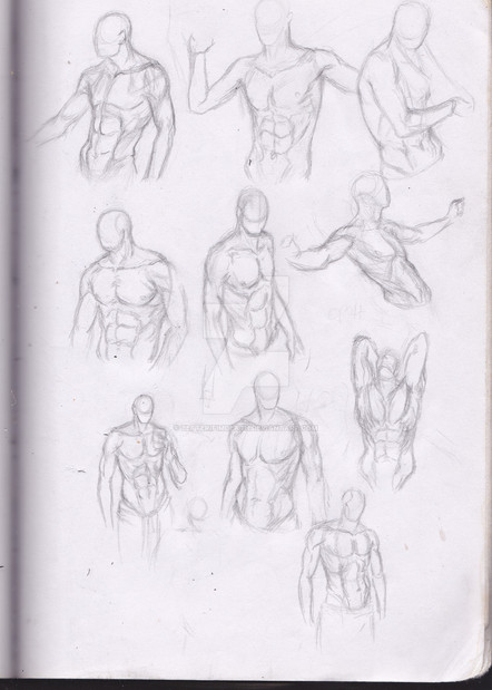 I don't ever draw men. Like... ever. So I decided to practice. I tried to concentrate on shapes and muscles rather than trying to draw a completed, detailed picture. I'm pretty happy with the overall result except for a few, and the fact that it took so damn long. I need more practice so I can be faster. I'd like to say I'd do this every day to get better, and I WOULD like to do this every day, but this literally took me hours. And school is about to start and I wont have hours every day. but that wont stop me from doodling in class! lol Cept for the fact that without references I might teach myself wrong anatomy. I struggled with leg proportions on these drawings. Wanted to make them to long.Of course I had references for these mens.
