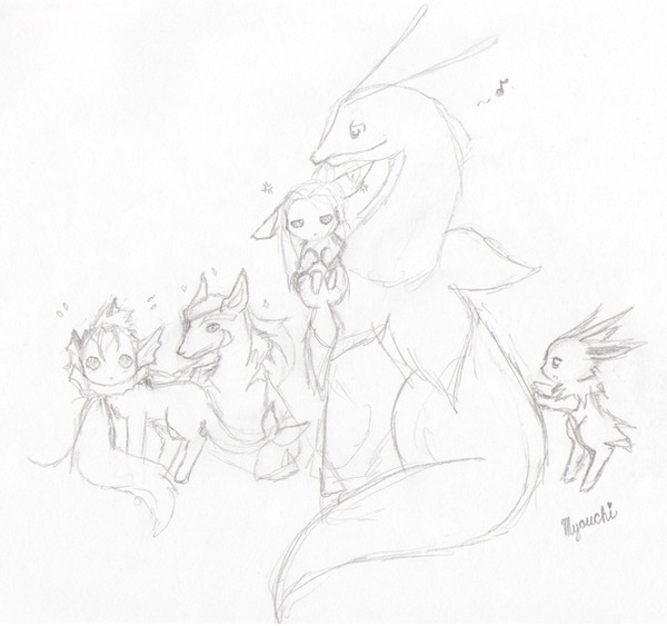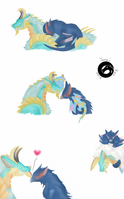 I was trying to do a chibi Zinogre and Mizutsune biting his tailmy boyfriend loves Zinogre and im in love with "bubbles" so~ there you go XDDD