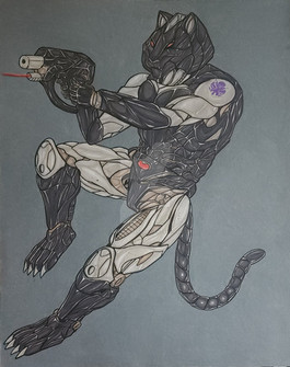 The commission work with Beast Wars Ravage in all his glory.The intention for the piece, is to print multiple copies, and have them signed and given out by the voice actor himself, Lee Tockar to fans at various conventions he is featured at.