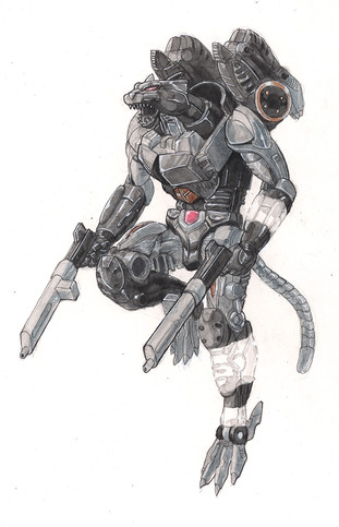 The commission work with Beast Wars Ravage in all his glory.The intention for the piece, is to print multiple copies, and have them signed and given out by the voice actor himself, Lee Tockar to fans at various conventions he is featured at.