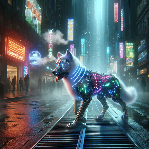 #digitalart #characterdesign #dog #cyberpunk #scifi #advancedtechnology #ai #android #augmented #biomechanical #bladerunner #cyberdog #cybernetic #cyborg #dystopia #dystopian #futuristic #futuristiccity #hacker #neon #neonlights #neonrain #noir #robotic #tech #technomagic #urbanfantasy #wetstreets #scifianimal #lostcompanion