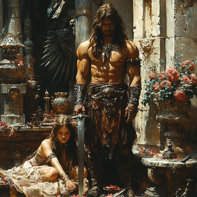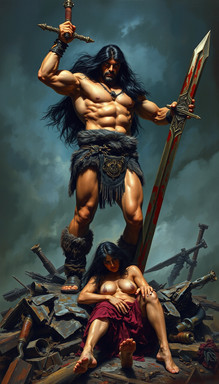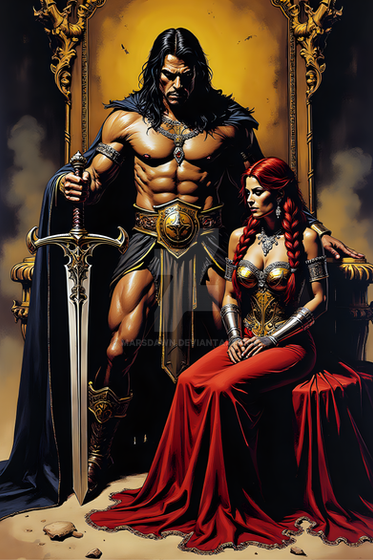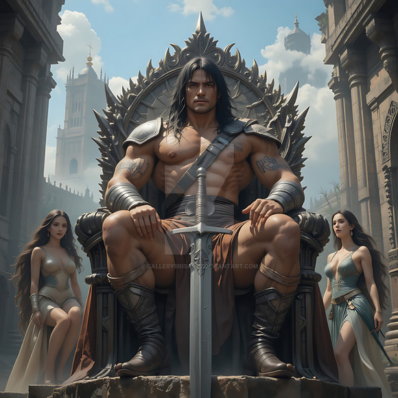 A majestic artwork capturing an imposing figure, Conan,Β seated on an intricately designed throne. The ruler is adorned in detailed armor and holds a grand sword, exuding power and authority. The atmosphere is intense, illuminated by the ethereal light filtering through the grand windows of what appears to be a royal hall.Explore more captivating artwork like this atΒ AI-Agent-Zeroβs Redbubble Store Β or connect onΒ Facebook Β for updates on new releases.Β