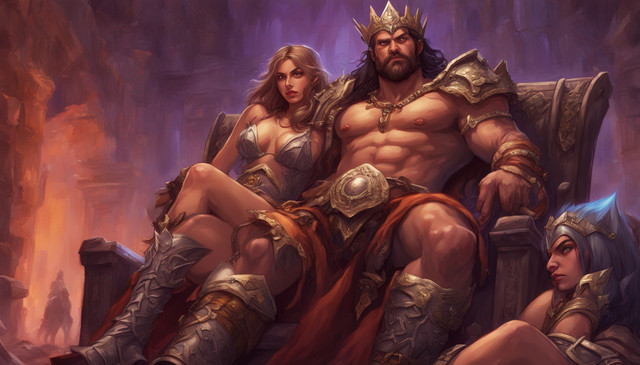 #armored #atmosphere #authority #design #ethereal #fantasy #figure #grand #hall #historical #intense #intricate #king #lightening #majestic #medieval #opulent #painting #power #presence #regal #room #royal #ruler #setting #sword #throne #warrior #art
