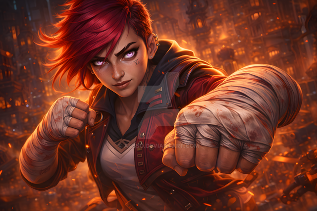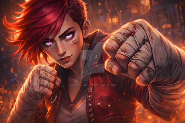 #digitalart #fanart #videogamefanart #leagueoflegends #badass #beauty #fight #fighter #lol #sexy #vi #red_hair #league_of_legends