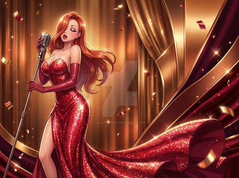 #fanart #jessicarabbit #gloves #microphone #redhairedgirl #dresssexy #jessica_rabbit #shinyclothes