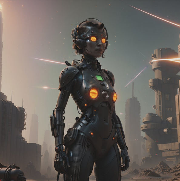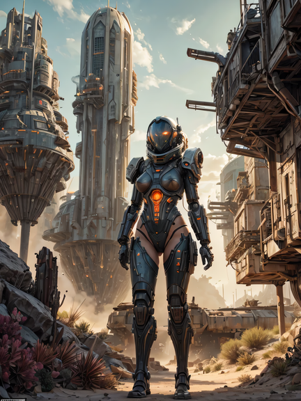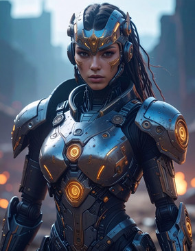 In the Eastern Garrison, a fearless and noble android warrior stands out as a lieutenant. Her loyalty to the clan is unwavering, and she leads the defense of the precious oases against ruthless assailants, embodying the spirit of unity and protection within her group. Her inspiring presence and unwavering bravery make her a respected figure.