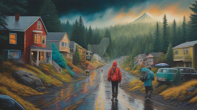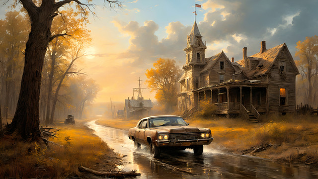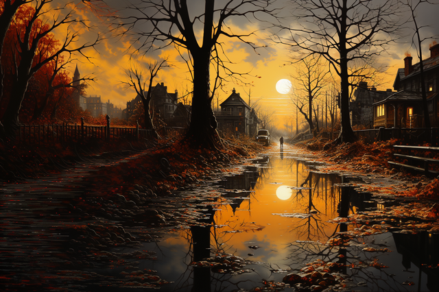#fall #maine #mainstreet #autumn #autumncolors #autumnleaves #dusk #evening #impressionism #impressionist #mysterious #newengland #village #new_england