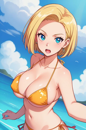 #anime #animegirl #beach #digitalart #fanart #beauty #videogamefanart #ai #android #android18 #animefanart #bikini #digitalpainting #dragonballfanart #dragonballz #hugeboobs #hugebreasts #coveringbreasts #aiart #android18dragonball #android18sexy #android18dragonballz