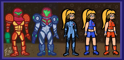 More Samus fanart! Why? Just because I feel like it! Samus in chibi format with her different suits. I didn't get around to doing her fusion suit, but oh well. I know her hand looks funny, I'm not gonna fix it.Related content