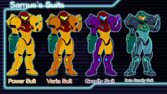 -dances loves gravity suit <3 and power suit. (Y) but varia suit is best but gravity suit OWNES >_> but the ZS is good