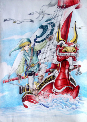 Ok, this is a fanart I did of Windwaker like before the game even came out. Found it the other day in the back of my car lol and I just thought I should post it up. It's too bad the waves in the game never got that scary... would have been kinda cool to have to sale through a really bad storm ramping waves and getting thrown out of your boat and whatnot. ... Or maybe that's just me. Anyway, great game... just playe dthrough it for the... umm... fourth time I think. I'm kinda on a zeld akick right now... went back and played through Majora's Mask again, then Wind Waker, and now I'm starting a new file on Ocarina of Time.Related content