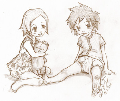 Very Cute, I'm not familiar with these character though, I stopped watching digimon after the 4th season. though the boy looks kinda like a cross between Tai and Izzy for the first season.