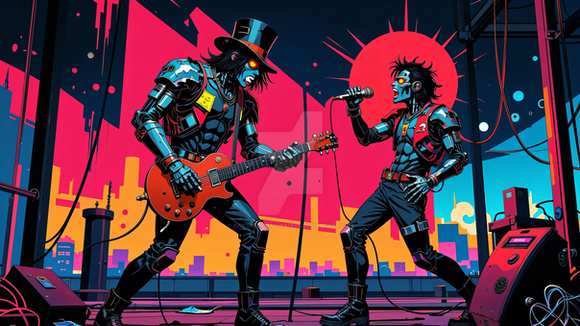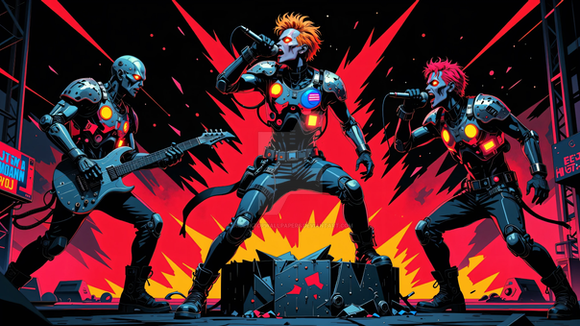 #videogamefanart #cyberpunk #neon #band #digitalart #scifi #fanart #characterdesign #wallpaper #robot #cyborg #1970s #1980s #azure #conceptart #concert #culture #design #digitalpainting #evolve #fantasyart #fantasycharacter #headphone #headphones #headset #microphone #music #musicband #rock #underground