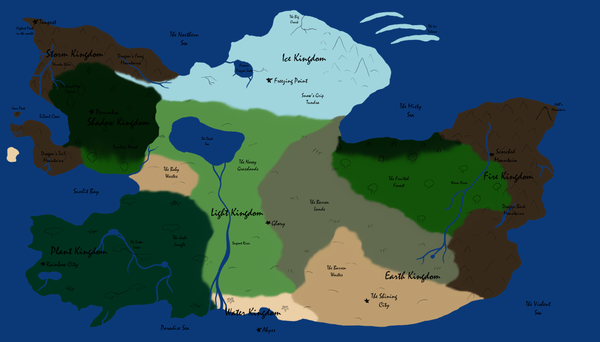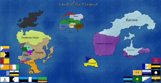 Shadotopia is the fictional world that is made up of five continents and many different islands: the Northern Ice Land, Orientatimina (Igakenosi, Dynasticia, Hareldic), Agarthilinija (Agartha, Enitoch, Parthena, Slitignija, Legionaria, Trenosia, Darknesis), Neomictlania (Mictlania, Tikalian), Masoneia, Shinko, Cumenira, Merria, Fendor, Mesonarpond, Pagania, and Southern Ice Land.