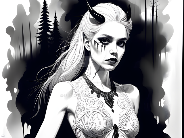 #ai #darkart #fantasy #fantasyart #goddness #gothic #gothicart #greyscale #illustration #macabre #magic #mythology #pagan #witch #witchcraft #witchywoman #stablediffusion