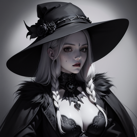 #ai #blackandwhite #darkart #fantasy #fantasyart #goddness #gothic #gothicart #greyscale #illustration #macabre #magic #mythology #pagan #witch #witchcraft #witchywoman #whitehairgirl #stable_diffusion