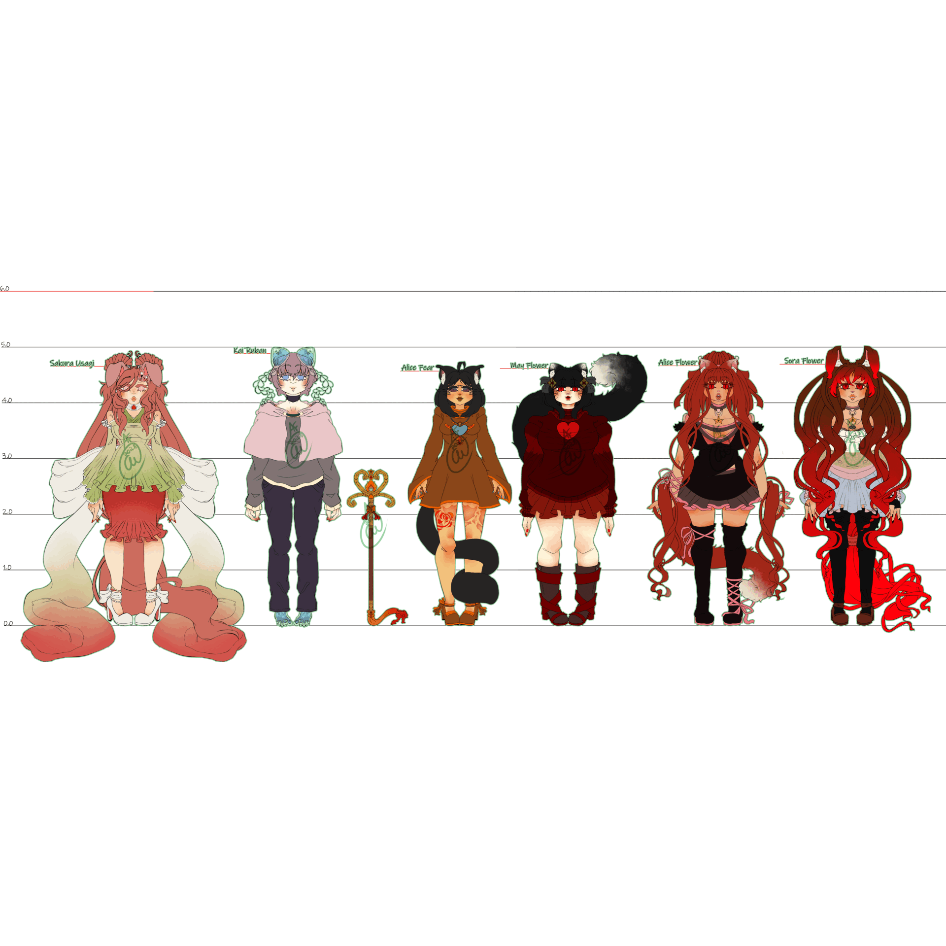hello there!!! it's been a while since I wanted to draw this kind of chart so here you go!!! all my ocs with the right height hhahathis chart is a bit old now, i finished it in november and i don't like it that much anymore, moreover some of the designs changed a bit but i'm still proud i've got this done ..!!